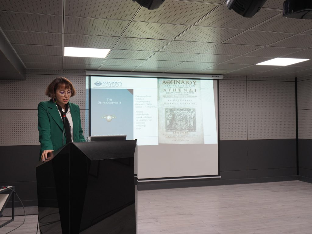 Etkinlik, KAM Müdürü Dr. Öğr. Üyesi Şükran Ünser’in antik Roma dönemine ait yazılı kaynaklara dayanan araştırma sunumuyla başladı. Sunumda, antik kaynaklarda adı geçen Kapadokya ekmeğinin tarihsel arka planı, üretim biçimleri ve bölgenin beslenme kültürü içindeki yeri ele alındı. Bu bölümde, Kapadokya’nın gastronomi mirasının tarihsel sürekliliğine dikkat çekildi.