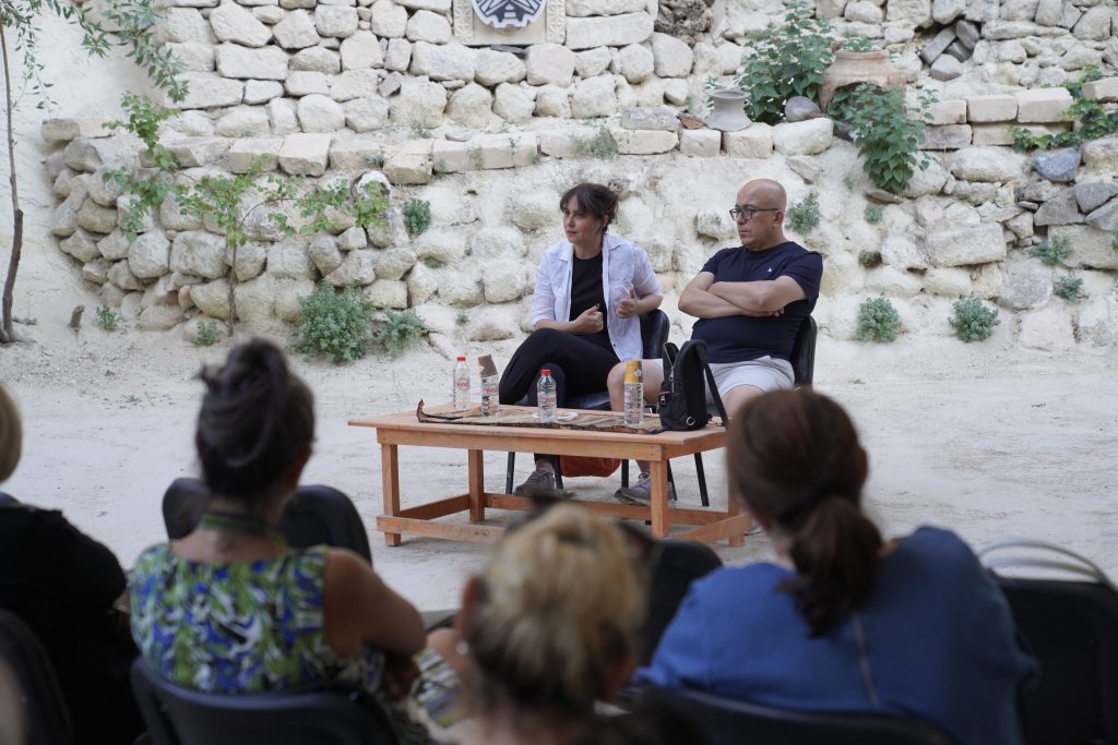 The second event, a talk titled “Gürsel Korat and Tuğba Çelik on the Relationship Between Literature and Place,” took place in Saklı Vadi, one of Mustafapaşa’s hidden natural beauties. During the talk, the influence of place on the act of writing was discussed, particularly in the context of Cappadocia, where the authors reside. During the discussion, which mentioned names such as Maurice Merleau-Ponty, Jacques Derrida, Virginia Woolf, Marcel Proust, Yaşar Kemal, and Tolstoy, the authors explored their relationship with the place. Korat stated that Cappadocia generally takes him to the past, while Çelik, conversely, takes him to the future. The authors also expressed that the serene, quiet, and mystical atmosphere of the Cappadocia region has an inspiring effect and is very fruitful for their writing activities.