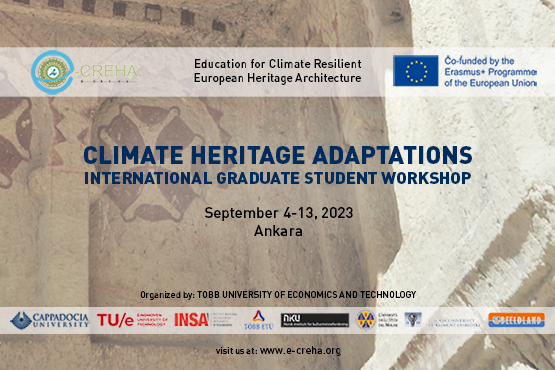 This event served as the opening program for the “Climate Change Adaptations” International Graduate Student Workshop, organized by the TOBB ETÜ Department of Architecture within the scope of the Erasmus+ KA203 e-CREHA (Education for Climate Resilient European Heritage Architecture) Project, which took place between September 4–13, 2023. The workshop was conducted in an interdisciplinary academic environment with the participation of academics and graduate students from different countries.