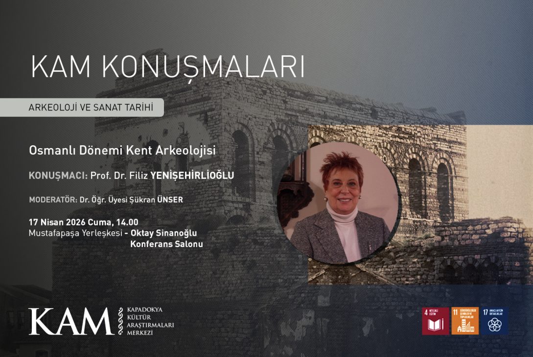 Kapadokya Kültür Araştırmaları Merkezi (KAM), “KAM Konuşmaları” serisi kapsamında “Arkeoloji ve Sanat Tarihi” temasıyla Bahar döneminin ilk konferansını gerçekleştiriyor.